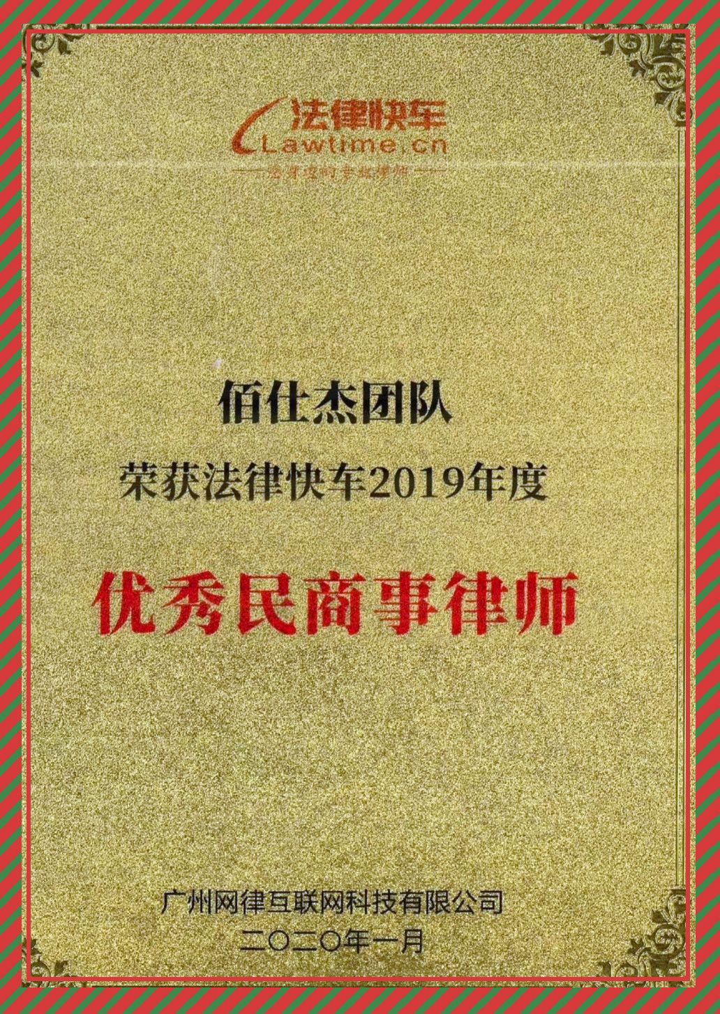 廣州佰仕杰企業法律顧問律師團隊喜獲法律快車2019年優秀民商事律師團隊稱號
